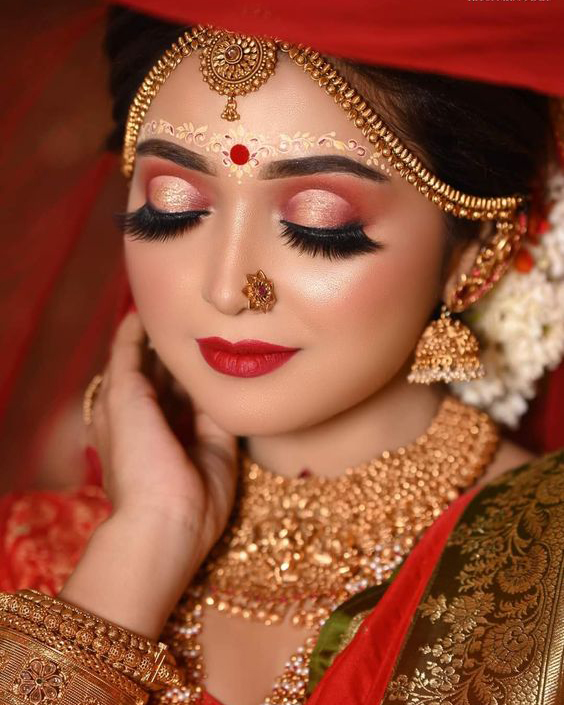 Creating a Bengali makeup look involves capturing the vibrant and traditional elements of Bengali culture. The Bengali makeup look is characterized by its bold colors, dramatic eyes, and traditional jewelry. It celebrates the cultural richness and elegance of Bengali traditions. Adjust the intensity of makeup based on personal preference and occasion, while keeping the overall vibrant and festive spirit intact.